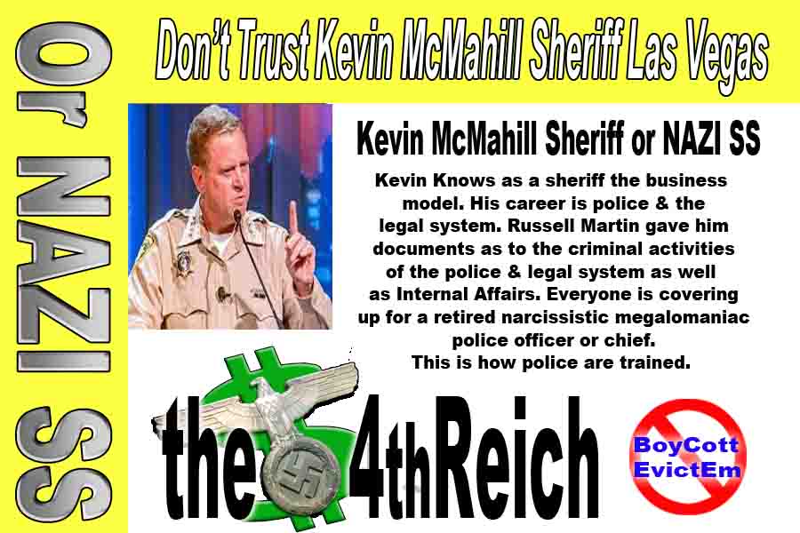 There is a foundation of trust that America has in The Constitution of the United States that allows an individual rights. Kevin McMahill and the American political and Federal Superior Court leadership has broken this trust relationship. When the legal system becomes corrupt the only option is trust in The Constitution of the United States and the right to a jury trial. The Nevada Attorney General, District Attorney, Judges and all of the public defenders and prosecutors have supported efforts to deny Mr. Martin rights to a fair and just trial. The remaining charge of Battery Misdemeanor is a state law that allows Russell Martin a jury trial. This is the leadership and business model of Kevin McMahill. The4thReich